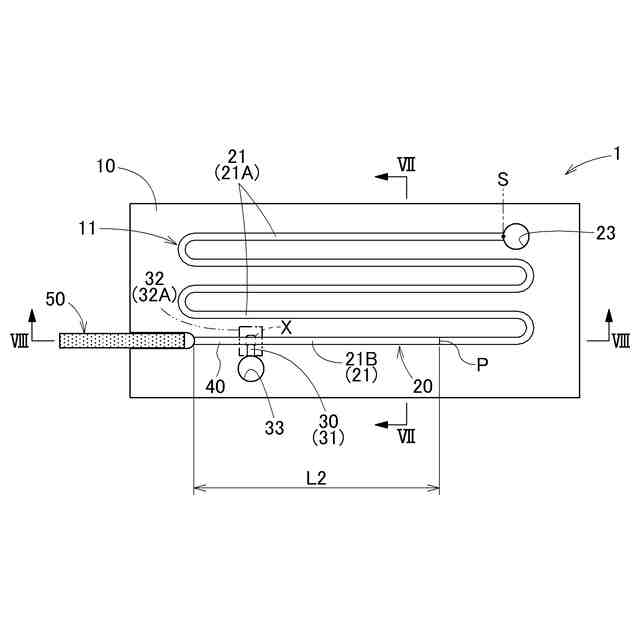 前記第二の流路は、前記第一の流路の前記流路溝とは反対側の前記基板の面に形成された第二の流路溝と、前記第二の流路溝を覆う第二の被覆材と、を有し、