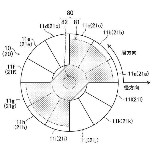 回転型の磁気冷凍装置等では、磁気作業物質に対し励磁又は消磁を行うタイミングを環状のAMRモジュールの周方向に変化させるために、AMRモジュールを複数(例えば12個)のユニットに分割する必要がある。