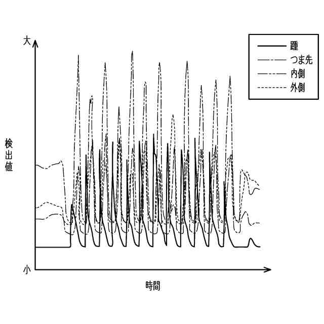 ところが、歩行動作を見るだけで歩行相を判定する方法では、経験の浅い理学療法士等にとって、正確に歩行相を判定することは難しい。そのため、経験に拘わらず正確に歩行相を判定できるように、判定を支援する技術が望まれている。