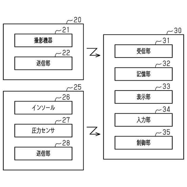 前記歩行者の足裏の複数の部位毎にかかる力の経時変化を、前記撮影部による撮影に同期して検出する検出部と、