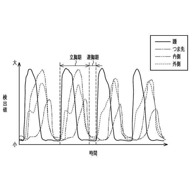 理学療法士、整形外科医等は、負傷、病気等で身体に障害のある人や、障害の発生が予測される人(以下、これらの人を患者という)に対して、運動療法、物理療法等を施すことにより、自立した日常生活が送れるよう支援する。この支援に際し、上記理学療法士等は、一般に、患者の歩行分析を行う。歩行分析では、患者の歩行動作を見て、歩行周期のうちのどの歩行相であるかを正確に判定することが要求される。歩行周期とは、歩行動作において、例えば、左右の一方の足の踵が地面に接触してから、再び地面に接触するまでの期間である。歩行周期は、複数の歩行相からなる立脚期と、複数の歩行相からなる遊脚期とにより構成される。各歩行相には、それぞれ果たすべき役割がある。いずれかの歩行相で、正常な状態から逸脱する状態が見られれば、その歩行相や、前後の歩行相での歩行姿勢に改善の余地がある。対象者に対し、正常な状態に戻すための対策を講ずることが必要となる。そのため、歩行相の正確な判定が重要となってくる。