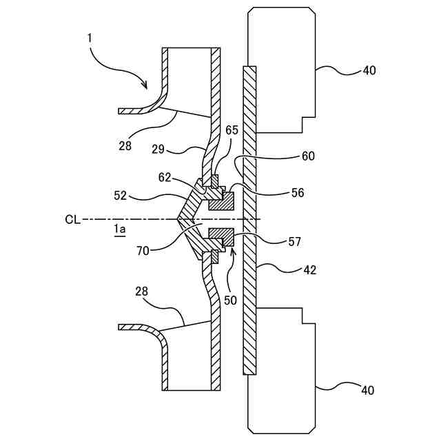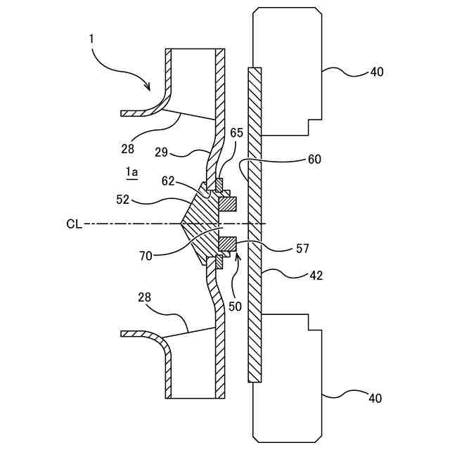 一態様では、前記主板は、その中央に形成された通孔を有しており、前記センターキャップは前記通孔に挿入されている。