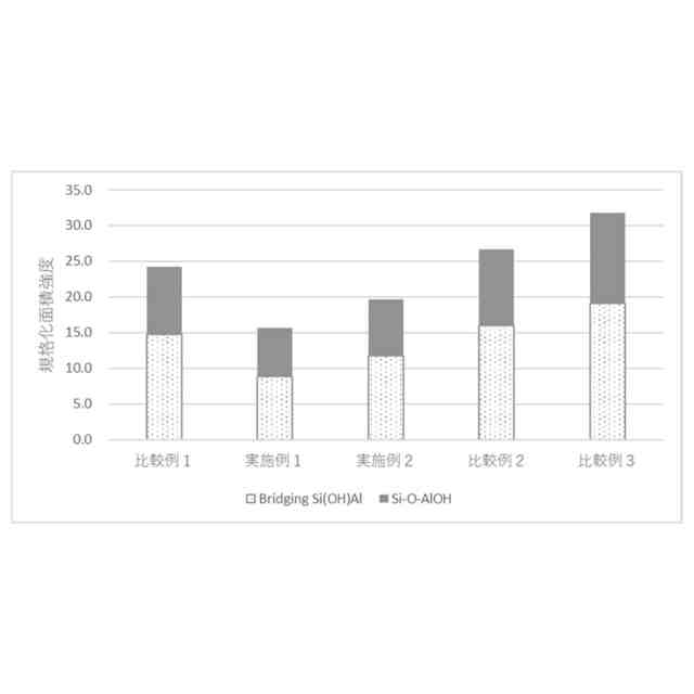 [3]フーリエ変換赤外分光法による測定において、Si-O-AlOHとbridging Si(OH)Alの規格化面積強度の合計が24.2未満であるゼオライト。