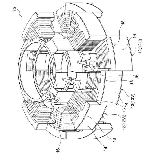図1から図5に、本開示の技術の一実施形態に係るステータ10の構成を示す。本実施形態に係るステータ10は、いわゆる分割コアタイプのステータである。分割コアタイプのステータの基本的な構成については、特許文献1に記載されている。ステータ10は、インナーロータタイプのブラシレスモータに適用される。すなわち、ステータ10の内側には、ロータ(図示省略)が回転可能に収容され、ステータ10とロータとによってブラシレスモータが構成される。