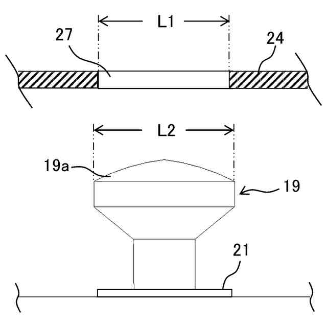 前記アンテナカバーの上面は、樹脂材料、または、開口によって形成された特定領域部を有する、