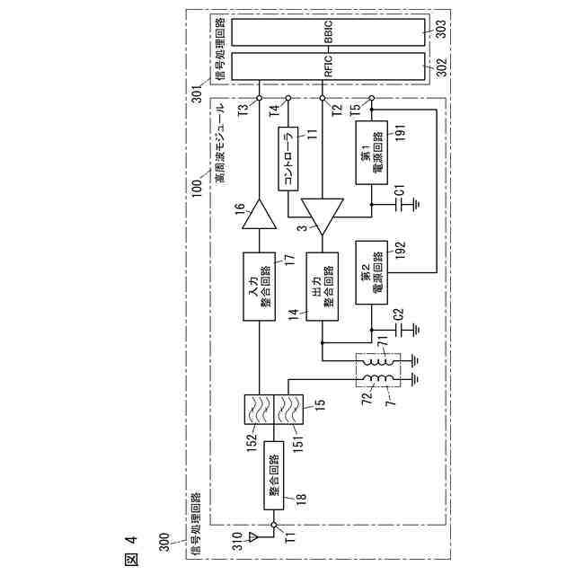 図4は、同上の高周波モジュールを備える通信装置の回路ブロック図である。