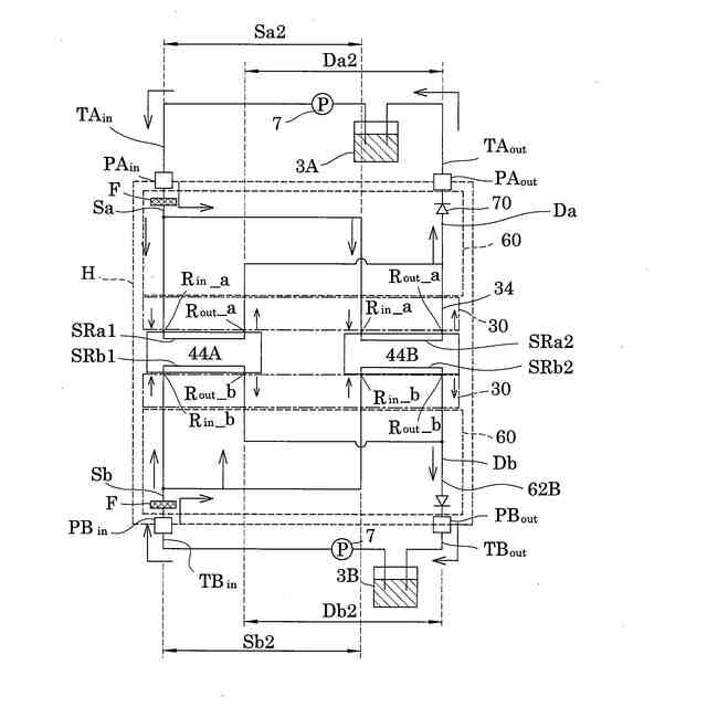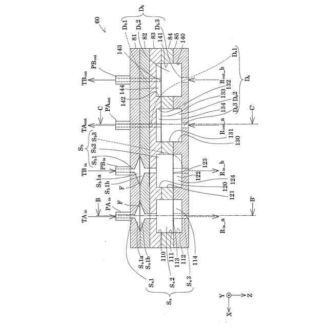 前記複数の流路基板は、前記第1流路基板と前記第2流路基板との間に配置された、前記第1共通部分および前記第2共通部分を画定する第3流路基板を含む、