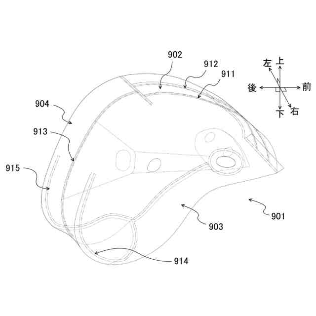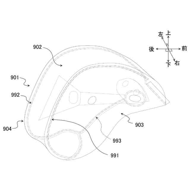 図3に示す立体エアバッグ901は、なだらかな曲面をフロントガラス等の比較的強度の低い車両室内構造や乗員に向ける。当該曲面は、その形状に起因して、衝撃発生時に強く接触した車両室内構造や乗員に与える負荷が小さいため、立体エアバッグ901のうち車両室内構造や乗員を向く表面として有利である。