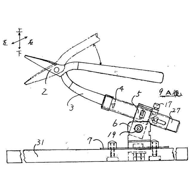 【解決手段】 本発明は、刈込鋏一方側の柄を挿入し保持する柄取付け固定具と、柄取り付け固定具を支持する上部支持具と、柄取付け固定具に柄の挿入方向と反対側で柄取付け固定具の背面側から柄を見て柄と柄取付け固定具を共に柄を時計方向に回動し、鋏刃の角度を調整固定できる。 また経時変化による鋏刃の切れ味が劣化しても再設定し改善出来る構造で、また椅子付き定盤などに取付けてより安全、安定した作業が出来る刈込鋏保持具である。