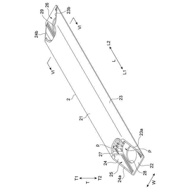 前記第二膨出部は、前記長手方向と平行な方向に延びる第二頂面を有する、