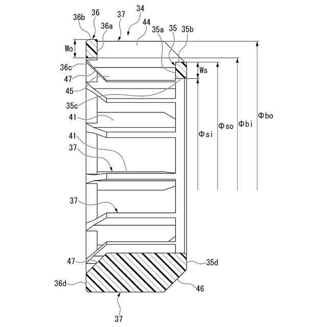 前記小径リングの外径をΦsoとし、前記大径リングの内径をΦbiとしたとき、
