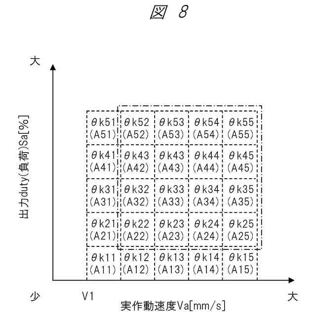 実作動速度および出力デューティと補正量との関係を規定したマップの一例を示す図である。
