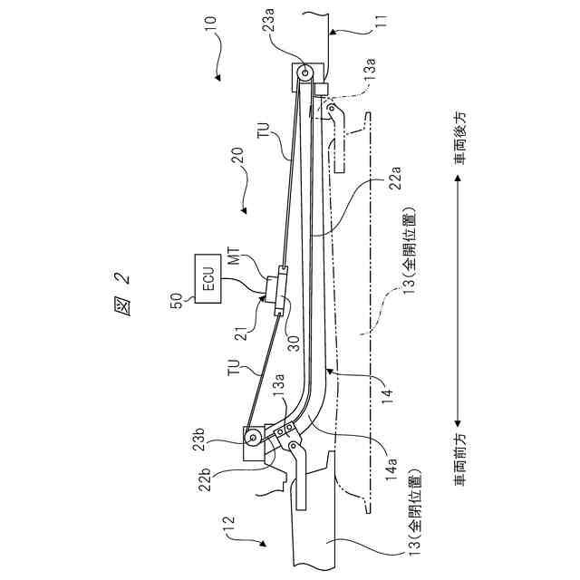 一実施形態に係るモータ制御装置を含む車両用開閉体制御装置の構成例を示す平面図である。
