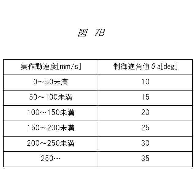 スライドドアの実作動速度と制御進角値との関係を規定したテーブルの一例を示す図である。