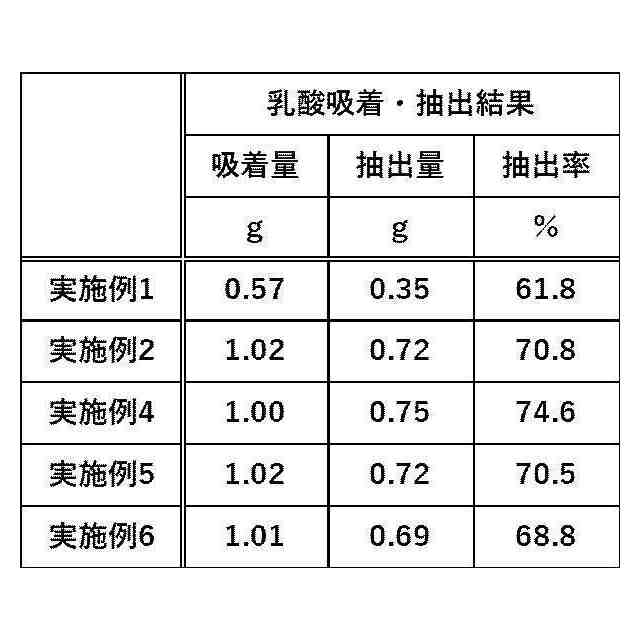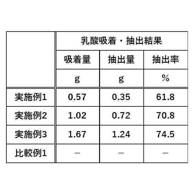 耐酸性が高い真菌類の一種である酵母を用いた非中和発酵において、特許文献4では、得られた乳酸をイオン交換樹脂で吸着させた後、鉱酸水溶液で抽出する。前述の通りイオン交換樹脂は、使用後に再生処理が必要である。加えて、抽出液中に鉱酸塩や抽出効率を上げるための水溶性有機薬剤等が多く含まれており、乳酸を分離する工程が必要である。特許文献5では、得られた乳酸を炭化物材料に吸着させた後、アセトンで抽出する。抽出後の炭化物材料を再利用する際、200℃、1時間の加熱処理を行う。そのため、抽出しきれなかった乳酸が気化し、消失することが問題である。さらには、アセトンで抽出した乳酸をエステル化等に用いる場合、乳酸誘導体の合成反応を阻害しないようにアセトンを完全に除去する必要がある。乳酸は蒸気圧が低く、熱変性や自己縮合しやすい。そのため、蒸留が困難である(非特許文献3)。そのため、濃縮によりアセトンを除去することになる。乳酸濃度が90%を越えると、自己縮合によるポリマー化が進行し(非特許文献3)、乳酸モノマーに戻すことが困難となる。そのため、アセトンを完全に除去するためには、90%まで濃縮した後、別の溶媒を添加し、再度90%まで濃縮する工程を繰り返さなければならない。その結果、労力やエネルギーを要する。