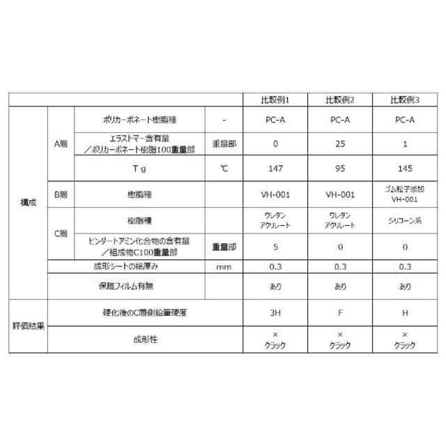 上記課題は特定のポリカーボネート系樹脂を含む層(A層)、アクリル系樹脂を含む層(B層)、アクリレート系活性エネルギー線硬化性樹脂組成物(組成物C)の未硬化物から形成された層(C層)の少なくとも三層を少なくともこの順に積層してなる熱成形用シートにより解決されることを見出した。