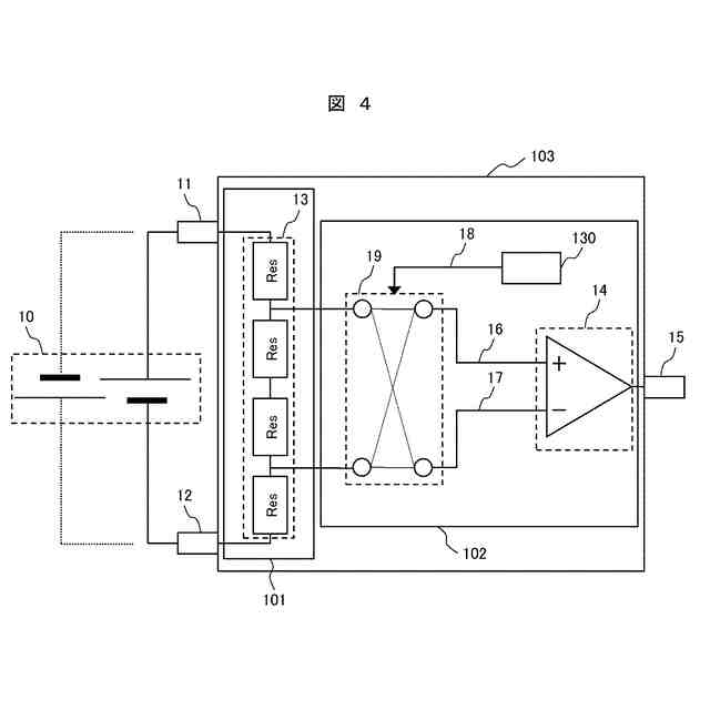 【解決手段】モニタ対象となる電圧の一方の電位に接続される第1の入力端子と、前記モニタ対象となる電圧の他方の電位に接続される第2の入力端子と、前記第1の入力端子および前記第2の入力端子間の電圧を分圧する分圧抵抗と、前記分圧抵抗に接続される極性切替え部と、前記極性切替え部に接続されるアンプ回路と、を備え、前記極性切替え部は、極性設定情報に基づいて、前記分圧抵抗と前記アンプ回路との間に設けられた前記分圧抵抗から前記アンプ回路への第1パスおよび第2パスの極性を切り替えることを特徴とする。