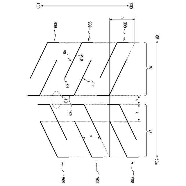 前記第1サイプユニットにおいて、前記一方の第1サイプ及び前記他方の第1サイプは、それぞれ、前記短辺の延在方向に沿う長さに対する、前記長辺の延在方向に沿う長さの比が、1~15であり、