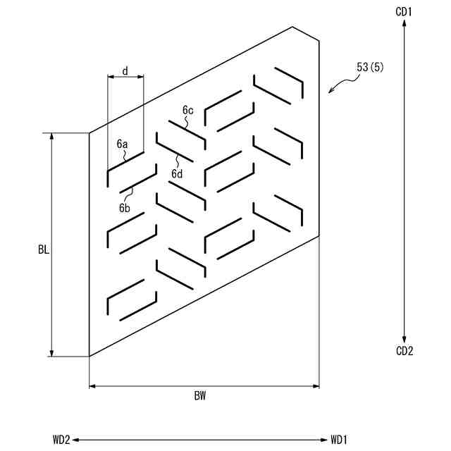 前記第1サイプユニットにおいて、前記一方の第1サイプ及び前記他方の第1サイプは、それぞれ、前記長辺と前記短辺とがなす、前記一方の第1サイプ及び前記他方の第1サイプが対向する側の角度が、90°以上であり、
