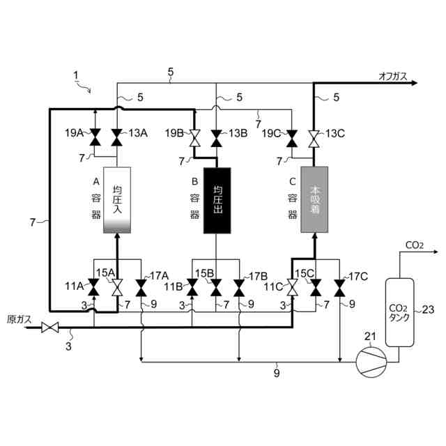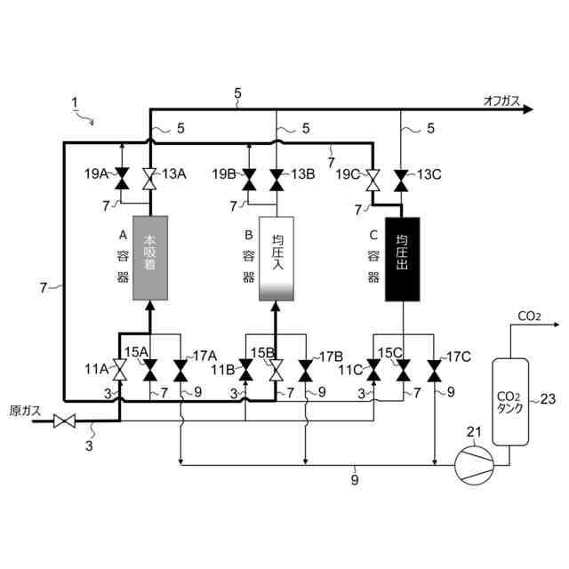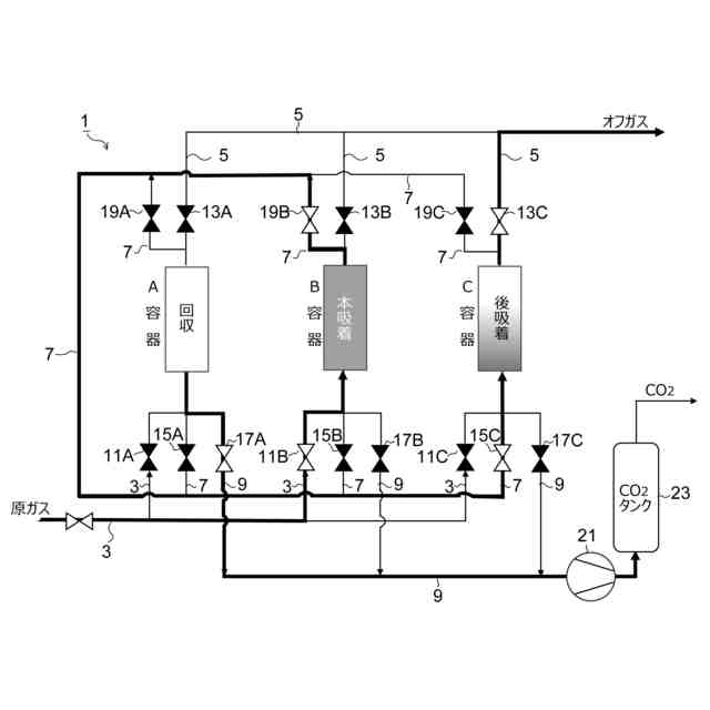 2つの容器で交互に吸着と脱着を繰り返す場合、CO