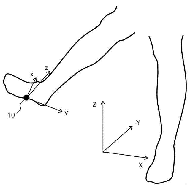 特許文献1には、歩行情報の取得を行う計測部を靴の中敷きとした歩行状態測定装置について開示されている。特許文献1の装置は、足の上下方向の加速度データと足のつま先の仰俯角データとを取得する。