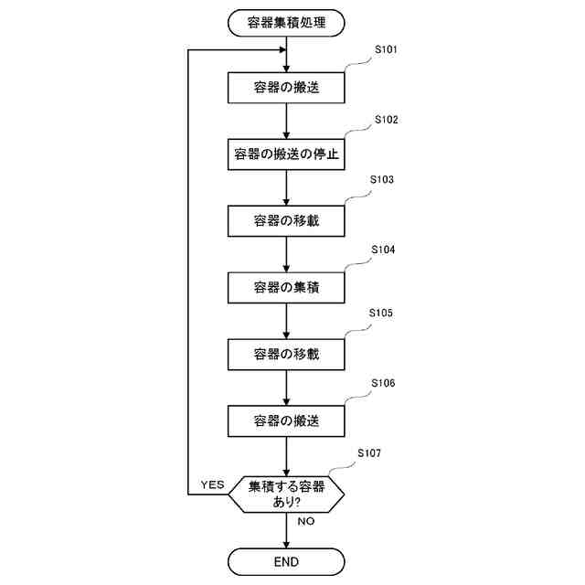 食品等の製造工程において、食品等を収納した容器は、保管または出荷するために、容器を集積する必要がある。