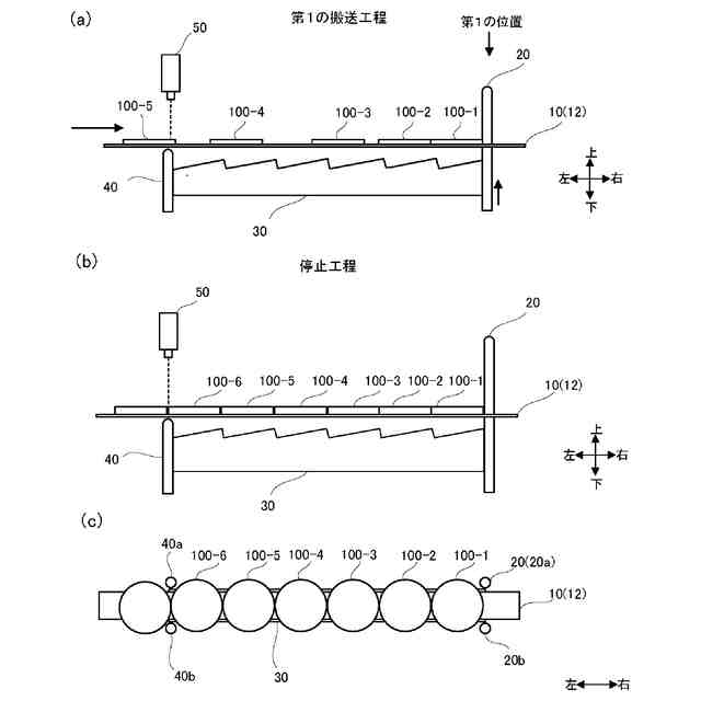 1番目からn番目の容器を、1番目の容器から順番に、コンベヤ上を上流から下流に向けて搬送する第1の搬送工程と、