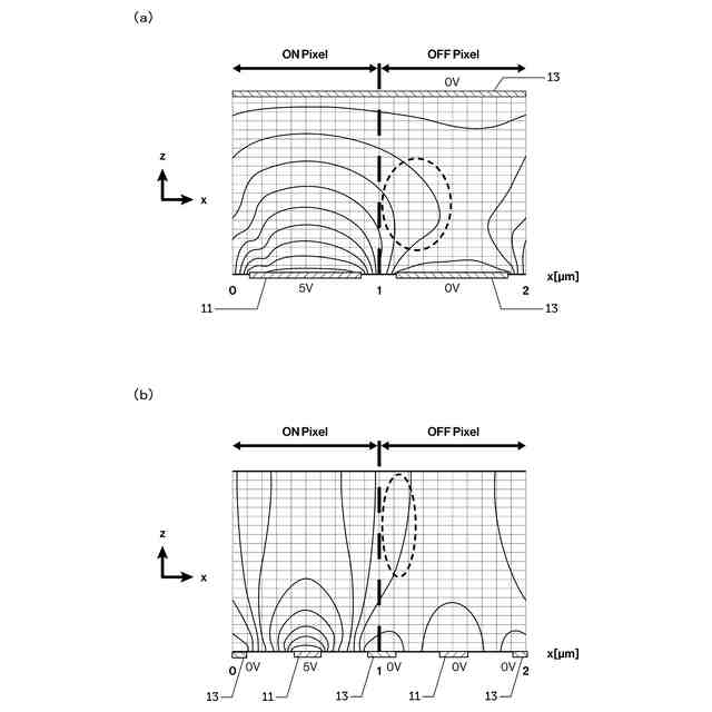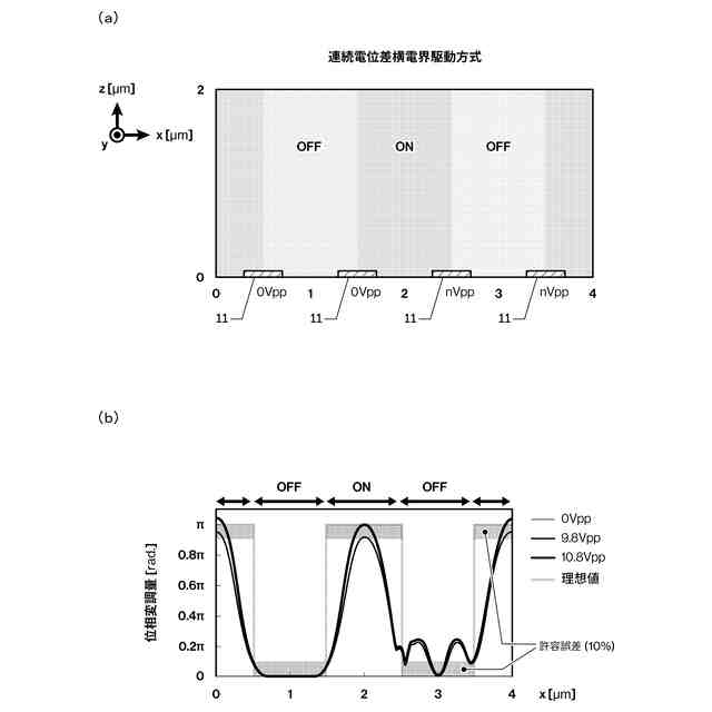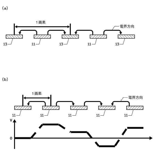 実用化のためには30°以上の視域角が必要であり、このときに満たすべき画素ピッチは1μm以下である。しかし、画素ピッチを1μm以下とする場合、電界の印加に伴う隣接した画素間の電界漏れにより、画素(個別画素)の独立駆動が困難であるという問題がある。