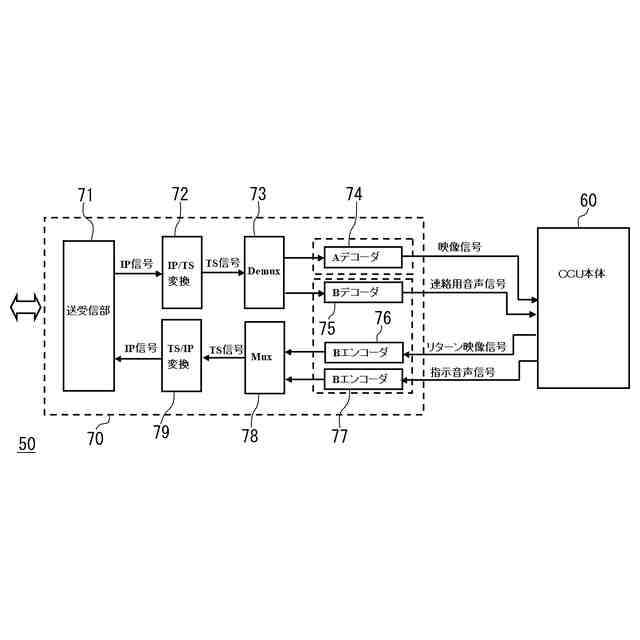 一方、IP伝送においては、送信側で伝送する信号をエンコード(符号化)してIP信号として送信し、受信側では受信したIP信号をデコード(復号)することによって信号がやりとりされるため、撮像装置側とCCU側でこうした処理を行う回路が必要となる。この際の符号化の方式(コーデック)としては、様々なものがあり、伝送される信号や目的に応じてこの方式は適宜設定される。