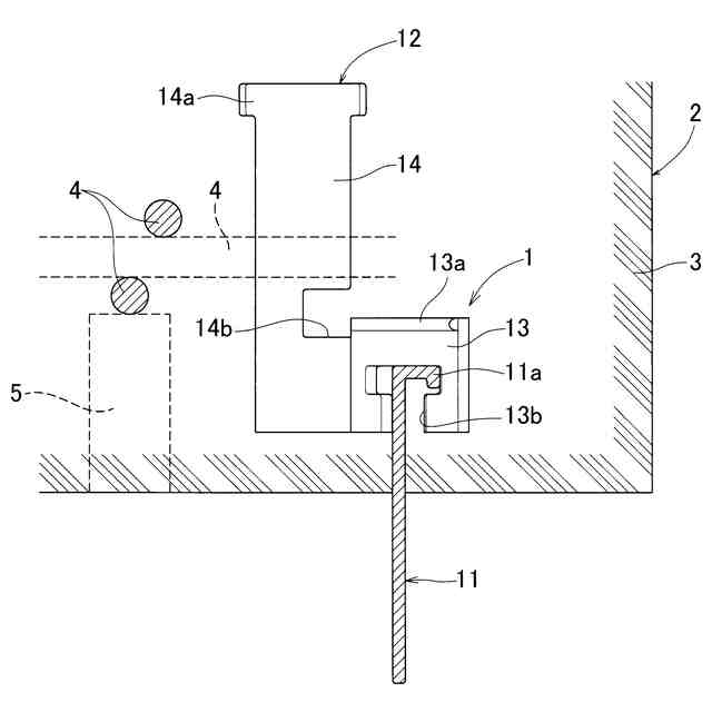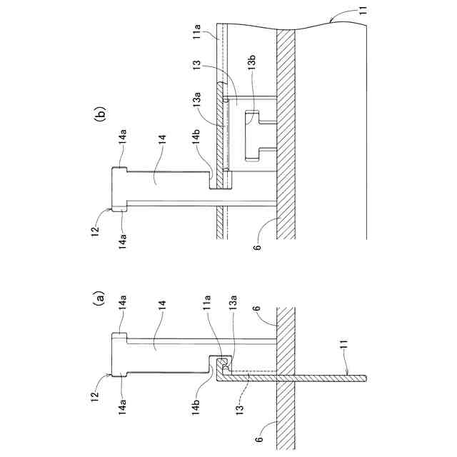 上記構成1において、前記水切り部材の引掛り部と前記フックの被係合部との係合は、前記被係合部に形成された係合溝に前記引掛り部を挿入した状態で前記フックを回動させて、前記係合溝の両縁部を前記引掛り部に当接させることによって行われるようにすることが望ましい(構成2)。このようにすれば、水切り部材とフックを簡単に固定することができる。
