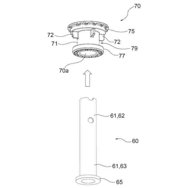 ここで、回転体を固定体から分離すると、キャスター軸の一部が剥き出しになる。キャスター軸の表面には、回転体の摺動をスムースにするための潤滑剤が塗られている。使用者が回転体を固定体に接続する際、潤滑剤が塗られたキャスター軸に埃や砂粒等の異物が付着することが懸念される。キャスター軸に異物が付着すると、回転体のスムースな摺動が阻害される。また、使用者が回転体を固定体に接続する際、キャスター軸の潤滑剤が、使用者の手や衣服を汚すことも懸念される。