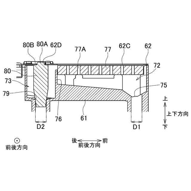 前記第2排液口が、前記第2排液口領域の底面に設けられ、