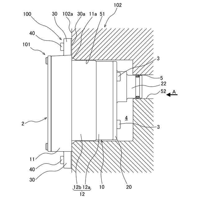 【解決手段】ポンプのハウジング2は、本体部10と、ボルト40により被取付体102と固定されるフランジ30と、を有し、フランジ30には、ボルト40が挿通する挿通孔31と、フランジ30の端面から突出してフランジ30と一体に形成され、ボルト40が挿通するカラー41と、を有し、被取付体102は、ハウジング2の挿通孔31に対応して形成され、ボルト40が締結される締結穴50と、カラー41が嵌合する嵌合穴53と、を備える。