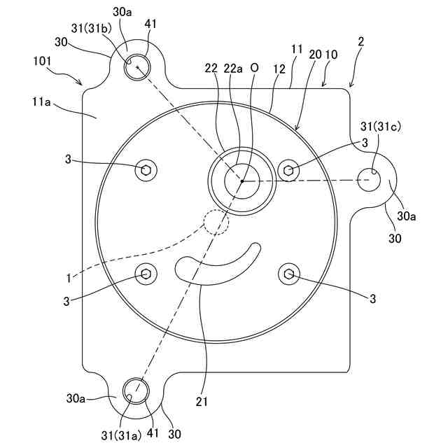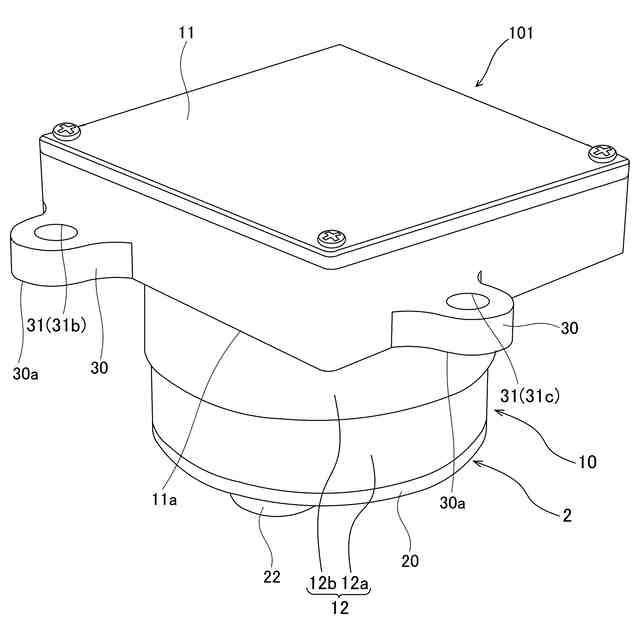 また、本発明は、前記ハウジングは、前記ポンプに液体を導く吸込口又は前記ポンプから吐出される液体を導く吐出口が設けられ前記本体部から突出して形成される突出部をさらに有し、前記被取付体は、前記ハウジングの前記本体部の一部を収容する収容凹部と、前記ハウジングの前記突出部が挿入される挿入穴と、をさらに有し、前記ハウジングは、前記本体部又は前記突出部により前記被取付体に対して位置決めされることを特徴とする。
