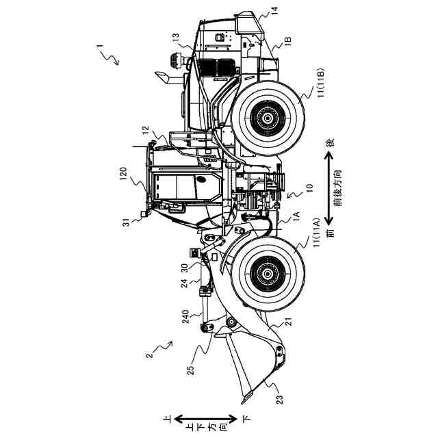 本発明の実施形態に係るホイールローダの一構成例を示す外観側面図である。
