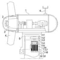 図2は本発明の装置の軸(5)を発電機(6)に繋げた左上部からの俯瞰図である