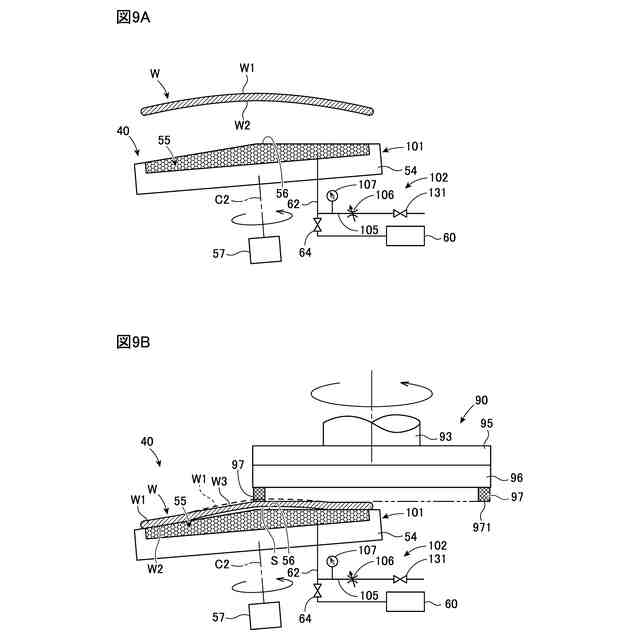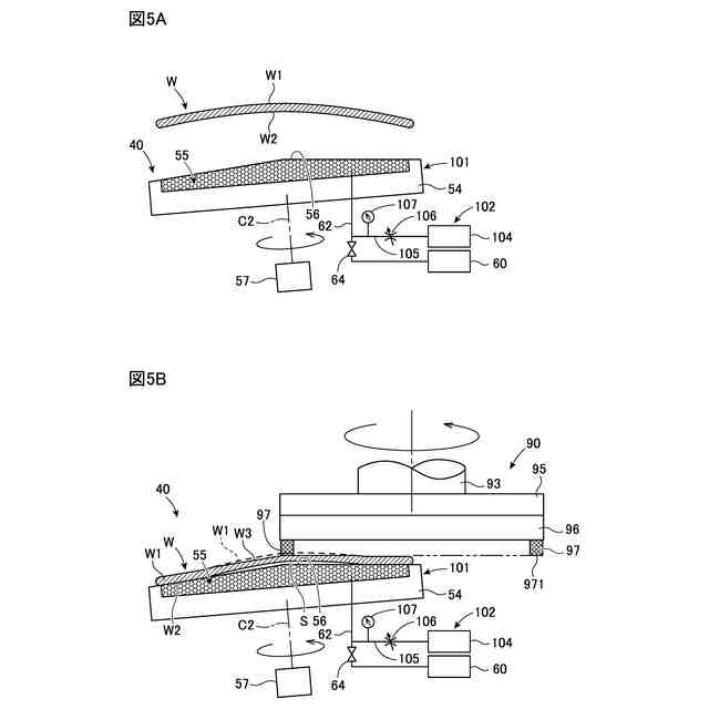 第1チャックテーブルの中央が外周より盛り上がった形状の保持面で、該板状ワークを吸引保持する第1保持工程と、