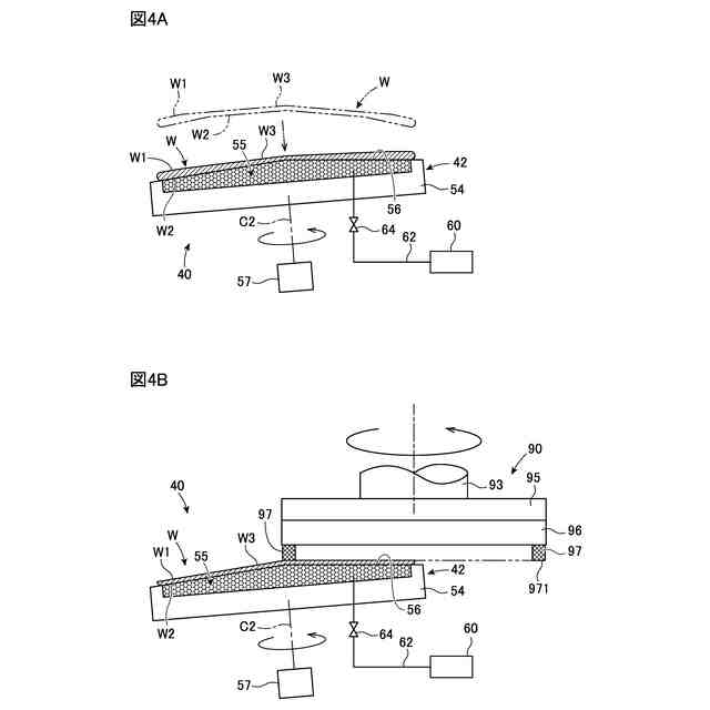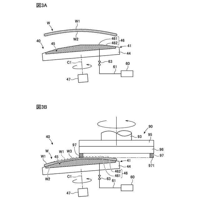 特許文献1は、反りがある板状ワークを回転する研削砥石で研削する研削方法を開示している。特許文献1では、反りがある板状ワークをチャックテーブルに保持させるため、反りによって凹状となる板状ワークの面の外周部にテープを貼り付けている。かかるテープの貼り付けによって、テープと凹状の面とで閉鎖する空間が形成され、該空間を形成した状態でテープを介して板状ワークをチャックテーブルに保持させている。