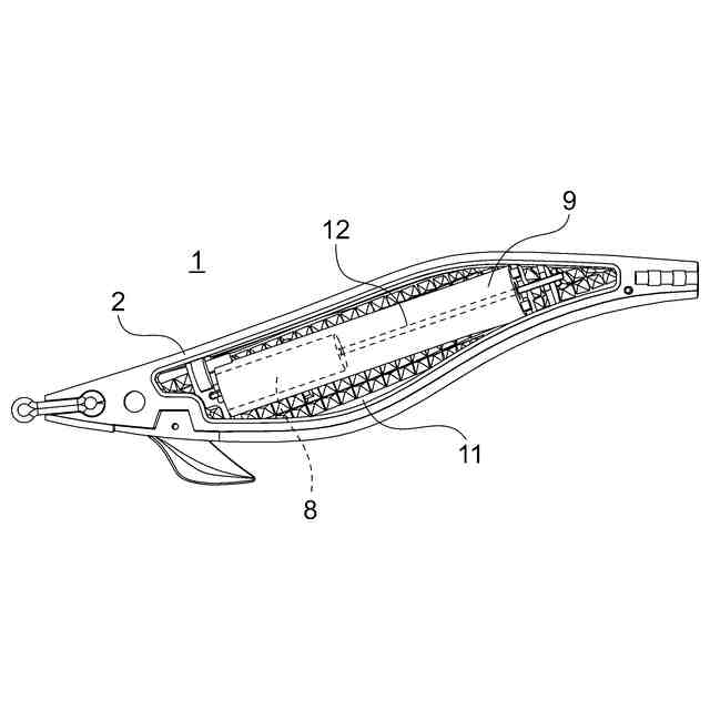 しかしながら、特許文献1のような漁誘引具では、光の反射をもたらし得るものの、反射光が弱くなってしまうか、小片に当たる外部からの光の角度によっては、反射光がそもそもフィッシュイーターに届かないため、魚の誘引効果が必ずしも高くならないのみならず、ルアー内部にその他の機構(例えば、重心移動システム)を設けるスペースが確保できないという問題があった。