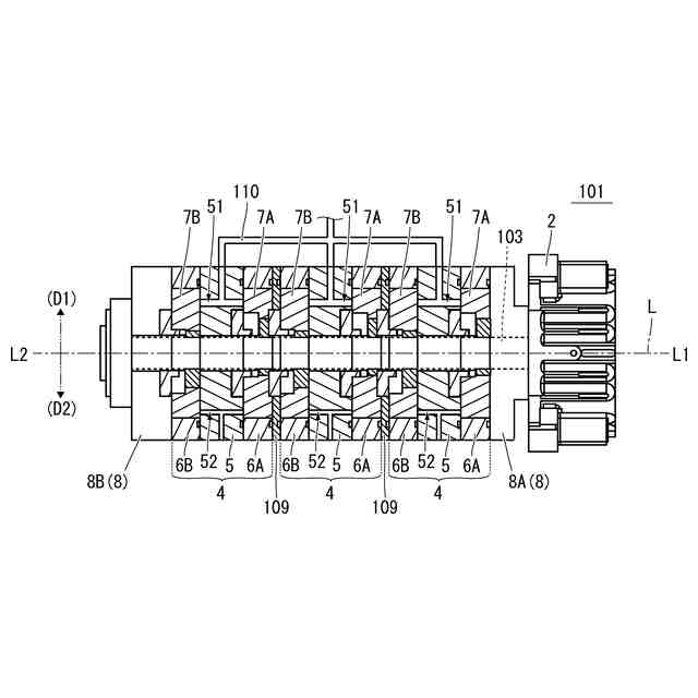 最も第1方向側に位置する第1のポンプ枠部の端面および最も第2方向側に位置する第2のポンプ枠部の端面にそれぞれ密着して配置され、密着する端面の開口を塞ぐ第1の蓋部および第2の蓋部と、
