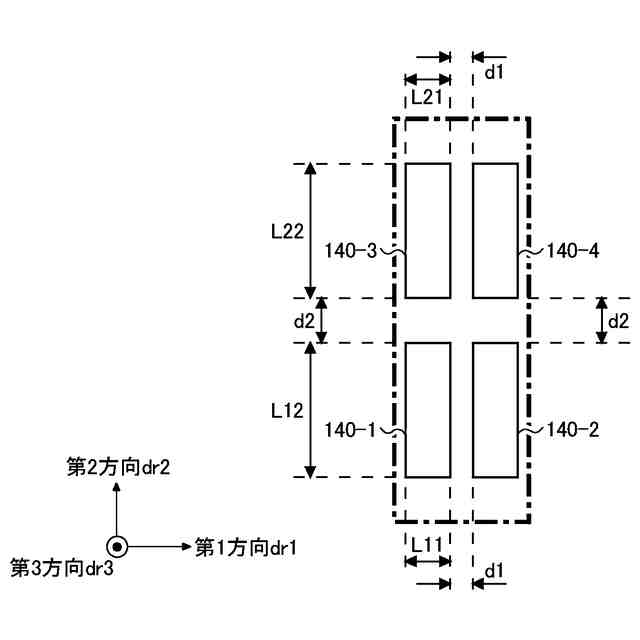 複数の前記金属パターンが、前記第1方向および前記第1方向に交差する第2方向に平面状に並んで配置され、