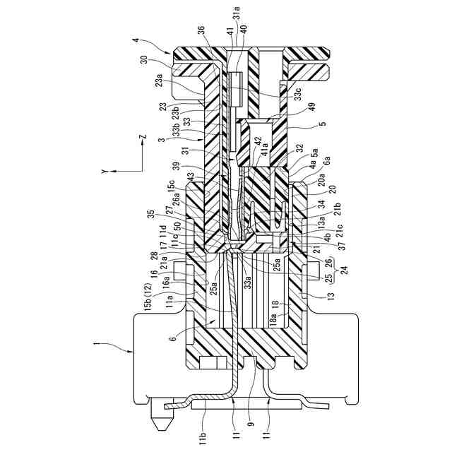 特許文献1では、例えばオス端子のタブの挿入工程前の作業においてタブの先端部側が変形し、タブの挿入方向Iに対して曲がってしまった場合にこのタブを挿入孔48に挿入していくと、フロントマスク46がハウジング45に固定されているため、タブの先端部が傾斜面48aに十分に追従することができず、タブの先端部が傾斜面48aに突き刺さり、タブが挿入できないという問題があった。
