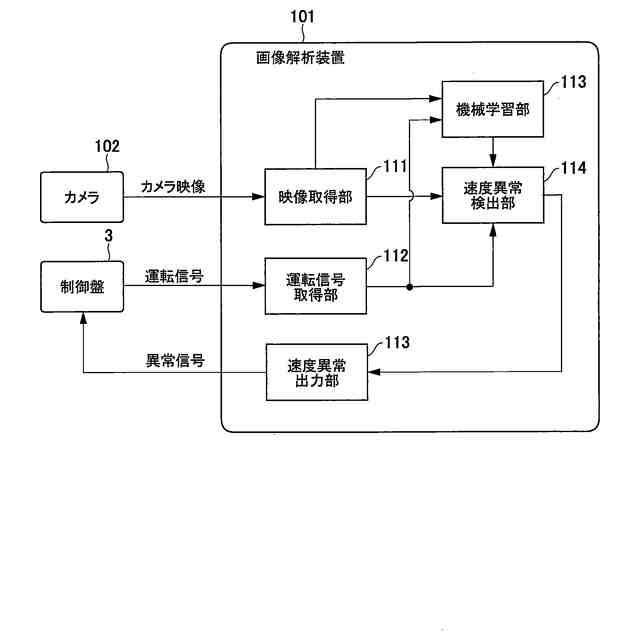 第1実施形態にかかる速度異常検出装置における画像解析装置の機能構成を示すブロック図である。