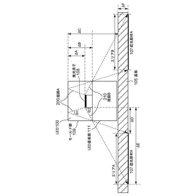 LEDから基板面に照射される光の迷光エリア1