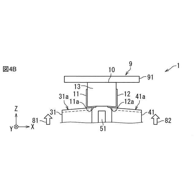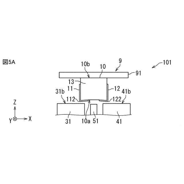 前記第1端子部と前記第2端子部とが互いに近づくように移動するとき、前記第1端子部は前記第1勾配に沿ってスライド移動し、前記第2端子部は前記第2勾配に沿ってスライド移動するように構成されている。