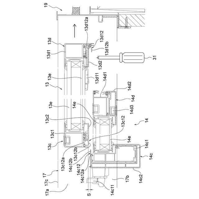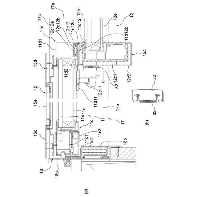 本発明に係る実施形態1の引違いサッシの縦断面図である。