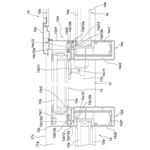 また、大開口のサッシ枠を大型の2枚の障子で構成する場合と比較すると、5枚以上の障子で構成しているので、各障子を小型化して重量を軽量化することができると共に、通常サイズ(汎用サイズ)の障子と部品を共通化してコストダウンも図ることができる。