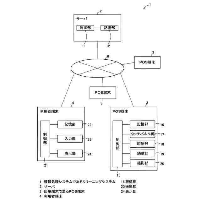 店舗端末は、複数の各クリーニング店にそれぞれ設置されるPOS端末である
