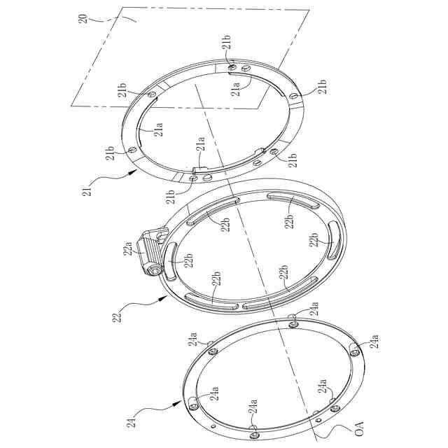 第1斜面部及び第2斜面部はそれぞれ3カ所であることが好ましい。係止部材を第1方向に回した場合には、第2斜面部の始点部が、第1方向になるほど厚みが大きくなる第1斜面部を押圧しながら回転することが好ましい。