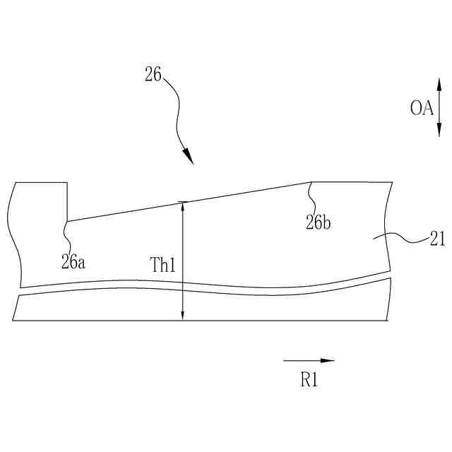前記第1リング部材は、前記光軸方向の厚みが、始点部から終点部にかけて変化する第1斜面部を複数有し、